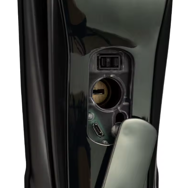 • Alimentation d'Urgence USB : Un port Micro-USB discret est également disponible pour brancher une batterie externe (type power bank de téléphone). Cela permet de réalimenter la serrure temporairement pour utiliser le code ou l'empreinte digitale.